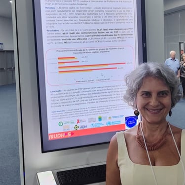 Apresentei o trabalho intitulado “Acesso e uso de serviços de saúde no SUS por mulheres trans que soroconverteram ao HIV” em uma Comunicação Coordenada que reuniu pesquisadores para discutir o tema “Situação Epidemiológica do HIV/Aids e outras IST”. Este trabalho analisou dados de mulheres trans e travestis participantes do projeto “Manas por Manas”, realizado em São Paulo. Além disso, apresentei o pôster intitulado “Infecções Sexualmente Transmissíveis entre mulheres trans usuárias de PrEP”, baseado nos dados do estudo TransOdara, que incluiu 1.317 mulheres trans e travestis de cinco capitais brasileiras.